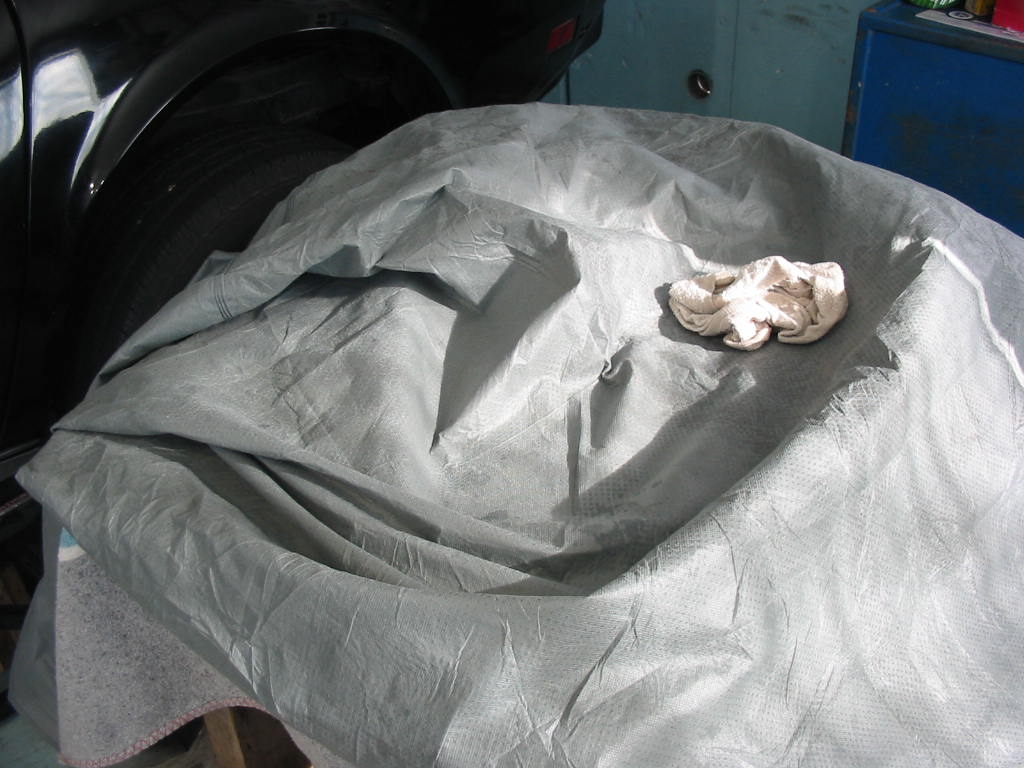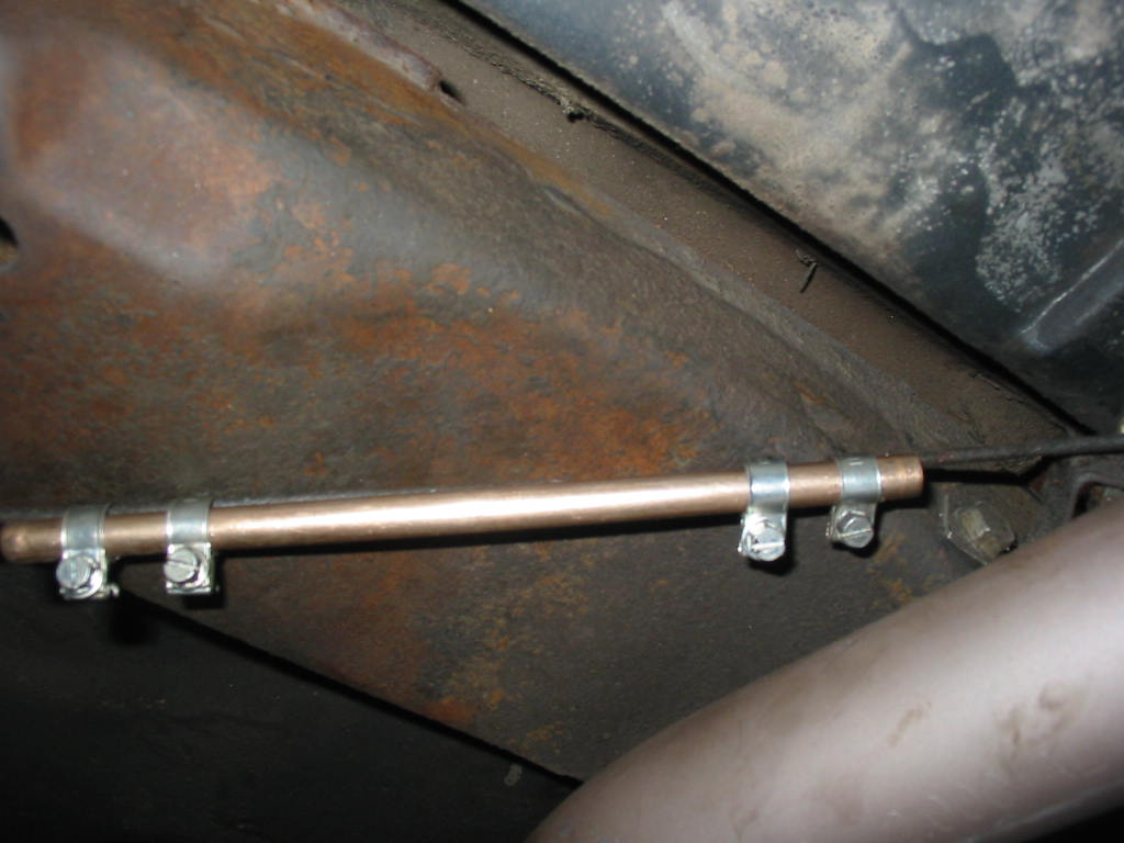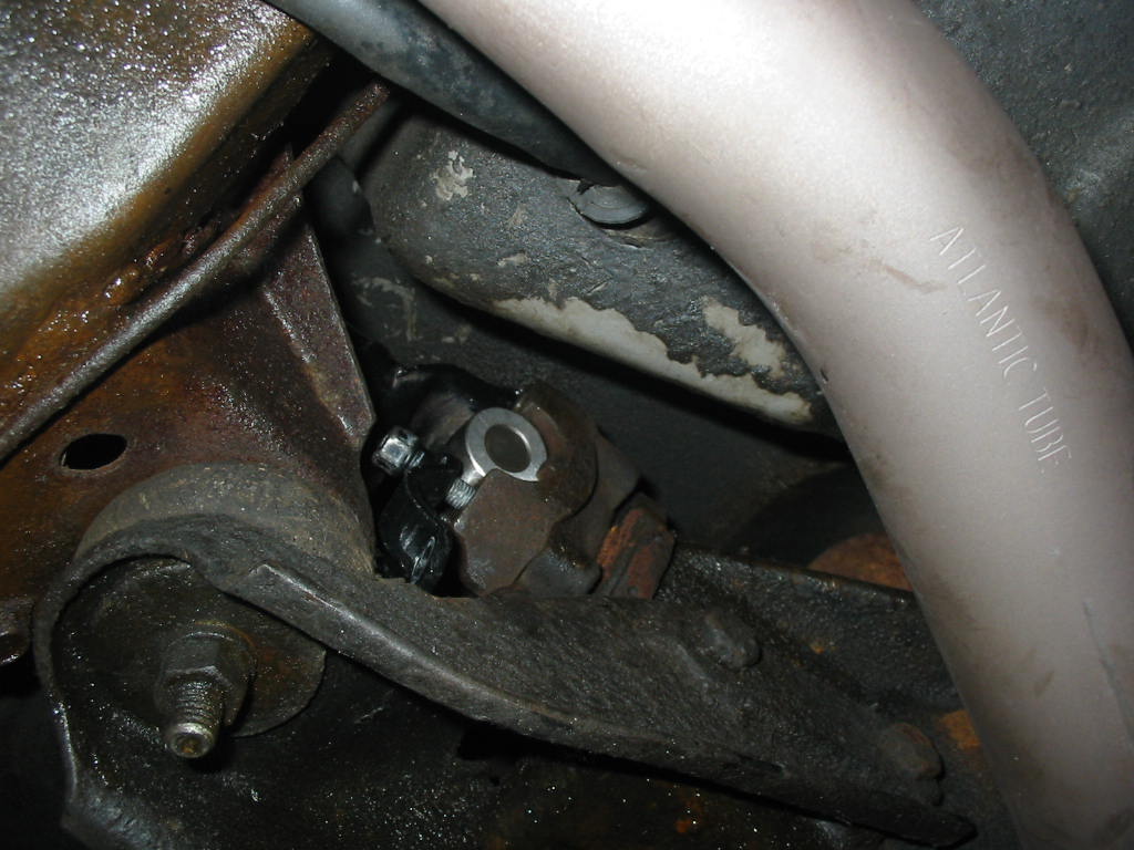 Time to put the drive shaft back in. I was careful to mark the shaft and yokes so I could get it back in the same way as it came out. Tight fit at the back. Just enough room to get the bolts back in – 7/16″ fine. The book says 70 #’ of torque. Just now way to do that with my tools. Only enough room to get a 1/4″ drive socket over the head. The saddle prevents using anything thicker like a regular box end. So I just used blue Locktite and a little extension on my 1/4″ ratchet to get it tight – likely about 20 #’ at best. I was able to get a torque wrench on the trans end. Again I used Locktite and only went to 30#’.