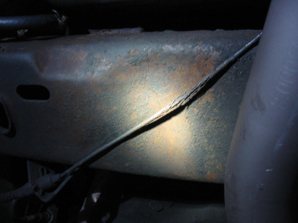 The parking brake lead on the right side was hidden under the old single exhaust pipe. The heat and moisture pretty well destroyed the wire. Chances are it will break, but I don’t want to replace the leads this year so…