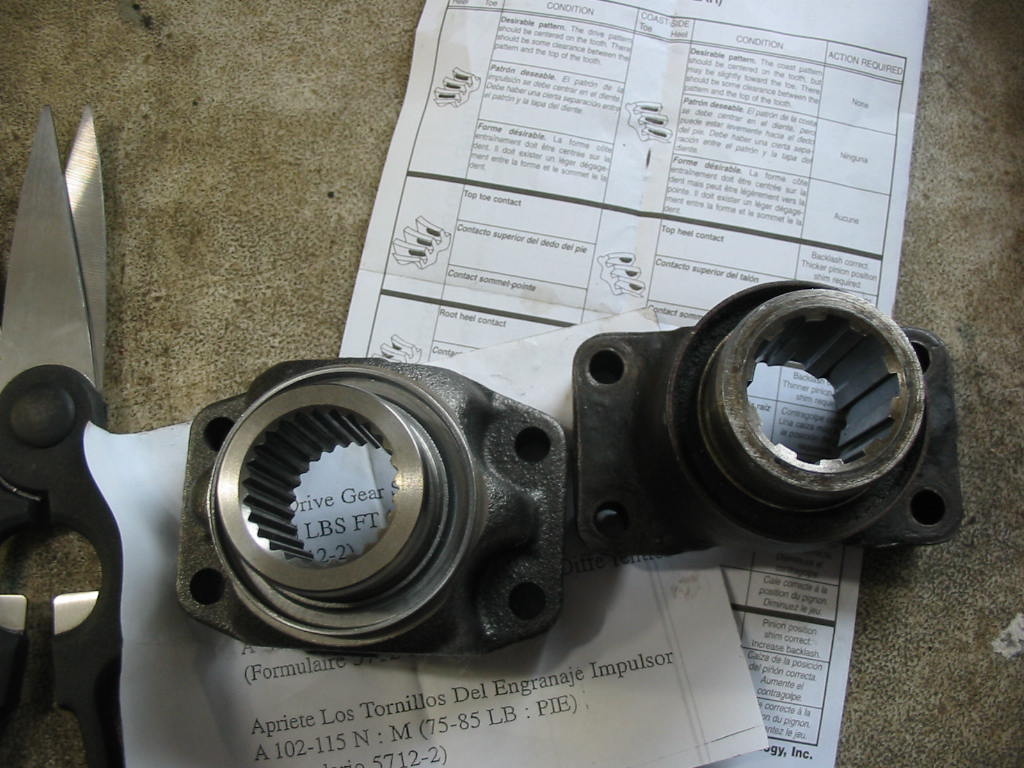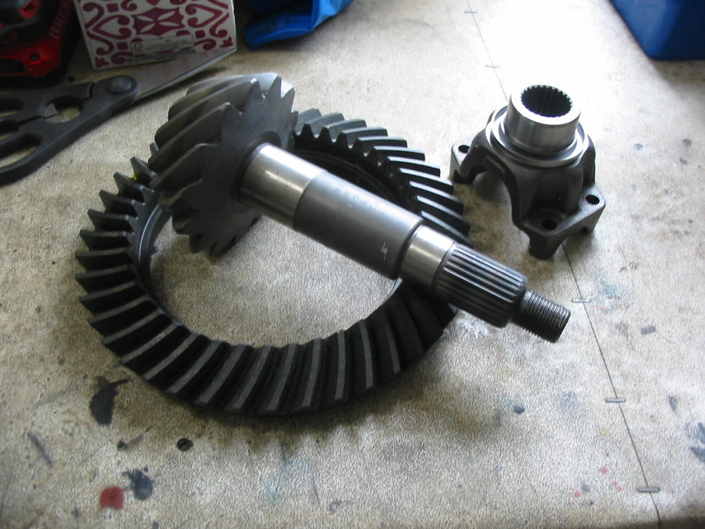 This is a 3.07:1 ratio gear and pinion set going into the Dana 44. It will replace the existing 3.31:1 now in the car. The main reason for using it is that it is the easiest option to lower the revs at highway speeds. An overdrive would be best, but that would involve more modifications than I want to make. This will give me a 7% reduction or a bit under 200 rpm which will give me some fuel savings and more importantly less engine noise (at all speeds). If I want to drive off quickly I only need to start off in L and then bump up to D.