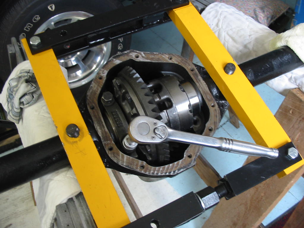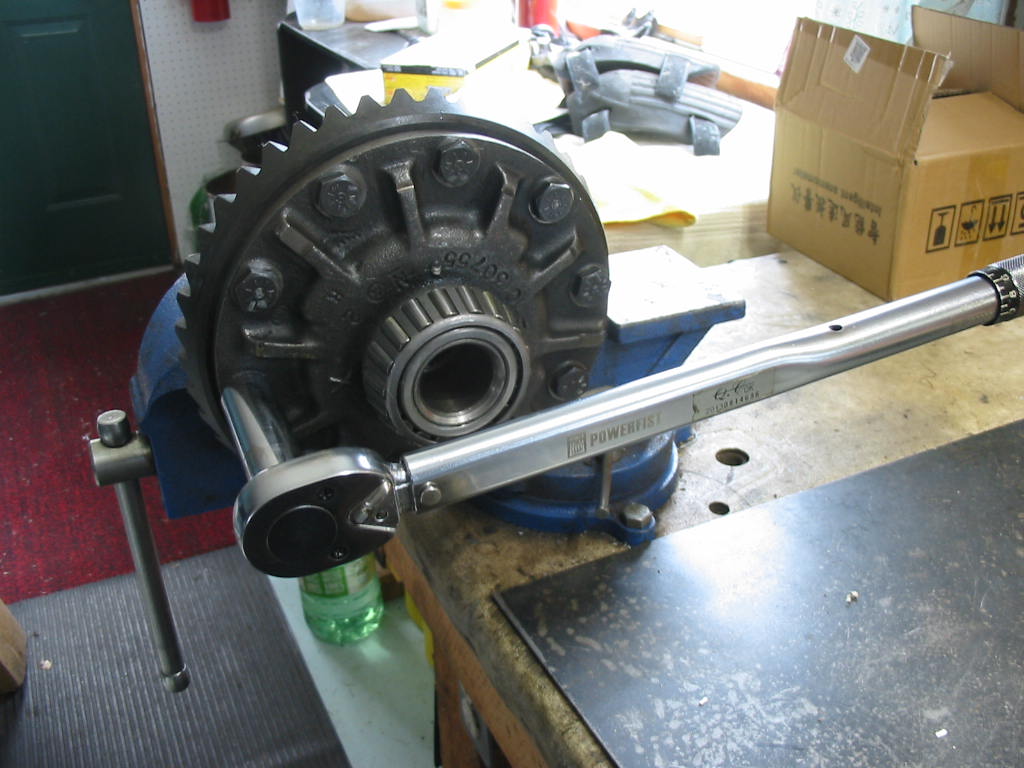 The ring gear has to go on with 80’# of torque. The only way I could hold the unit while I did this was to clamp it in my vice and use a chisel to keep it from rotating – I didn’t want to squeeze the unit too much. Worked quit well. I torqued to 40 and then to the full 80’#.