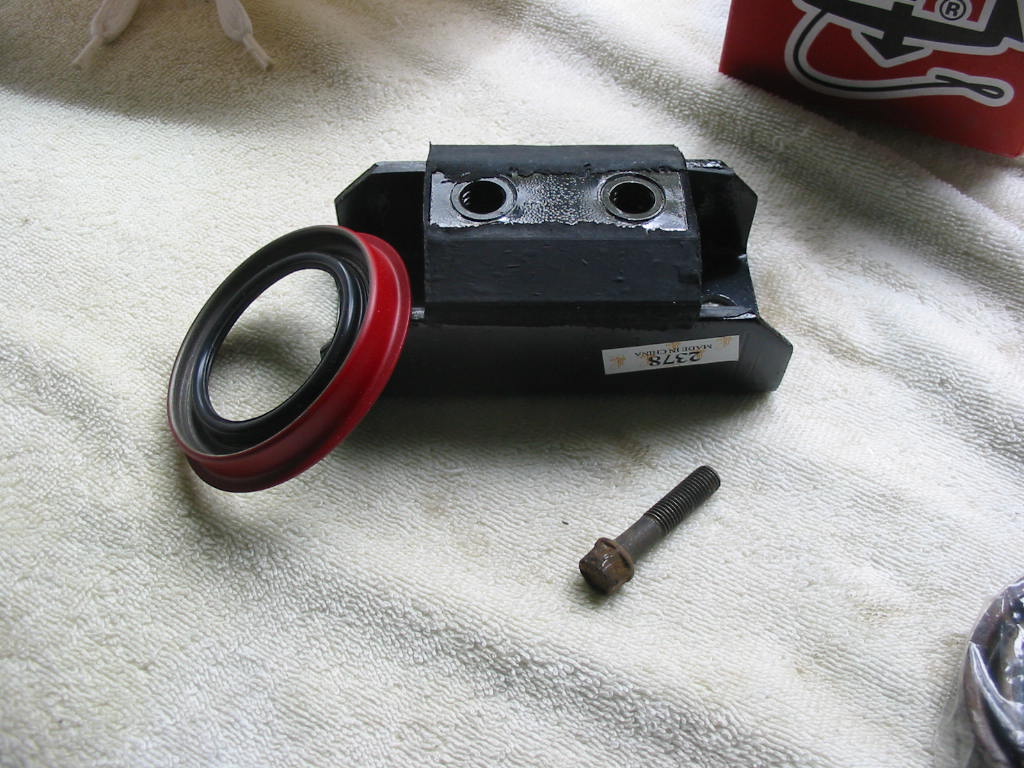 New trans mount block and front trans seal. I’ll need to order one new u-joint bolt; the rest are OK.