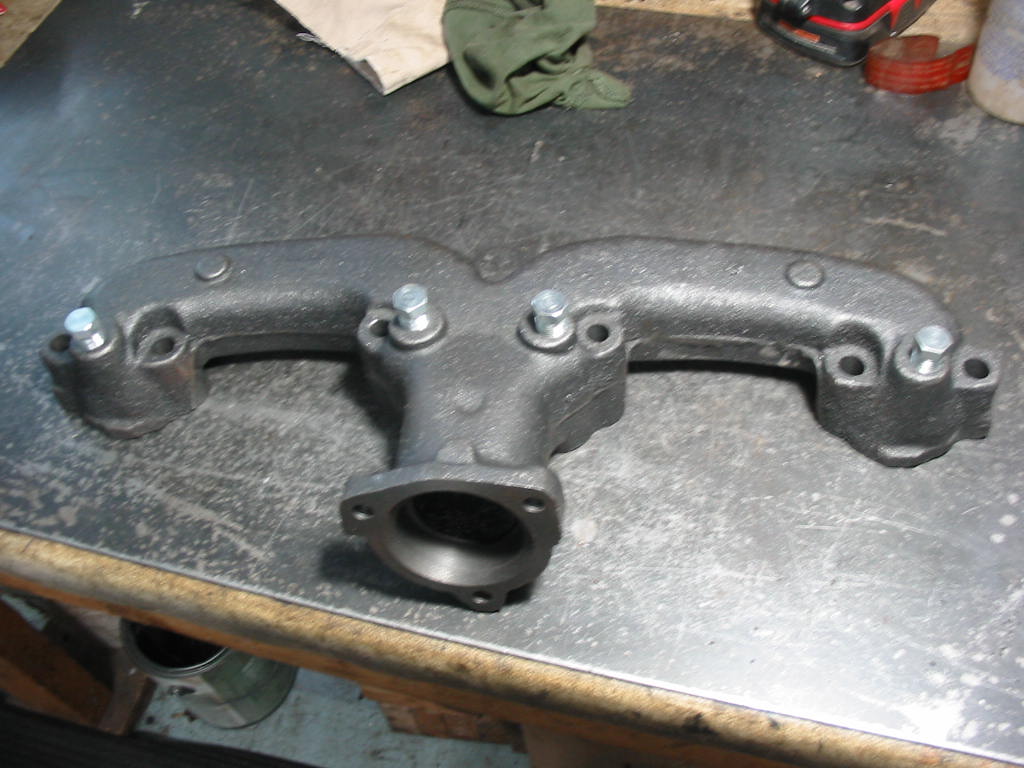 The new left manifold has arrived from Rock Auto. It has steel plugs in the air induction openings. The manifold finish is not as smooth as the original, but it doesn’t have as many bumps in the casting so looks nicer that way.