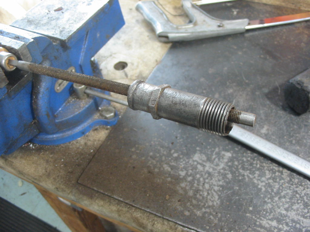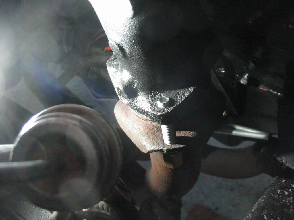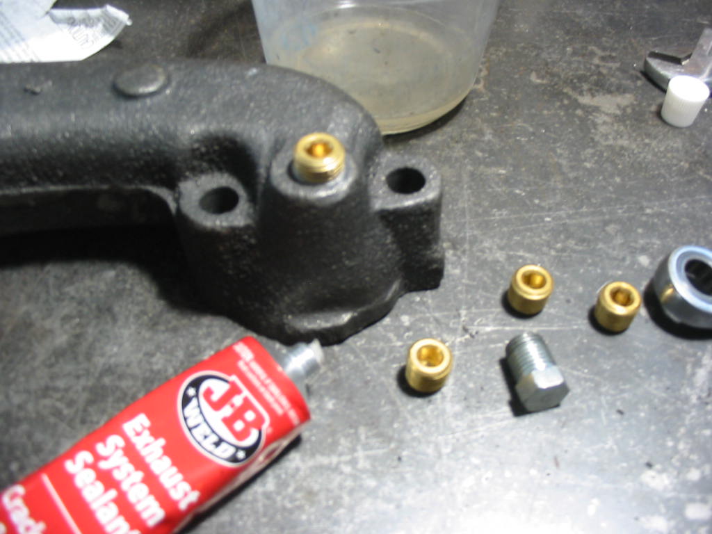 I’m replacing the steel plugs with brass ones. I’ve added a bit of exhaust system sealant to ensure a good seal. The brass will be easier to cut off than the steel.