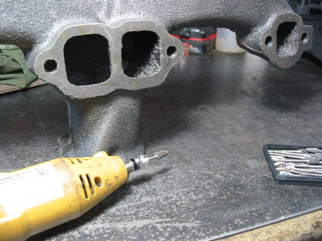 Final job before sandblasting and paint is de-burring the exhaust ports and other bits left off from the manufacturing process.