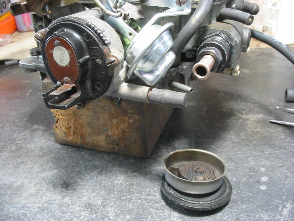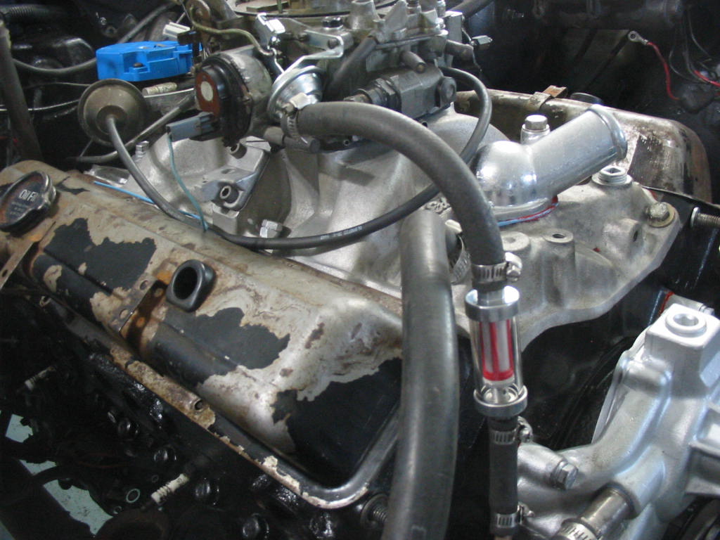 The connector can just be seen on the lower right. Here I’ve installed the clear fuel filter and hooked it all up to the carb. I had to do this before I could re-connect the fuel lines to the fuel pump other wise fuel might just pass through the pump and onto the floor.