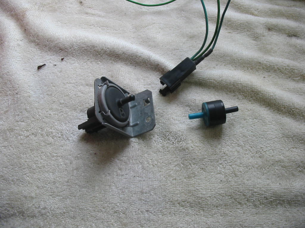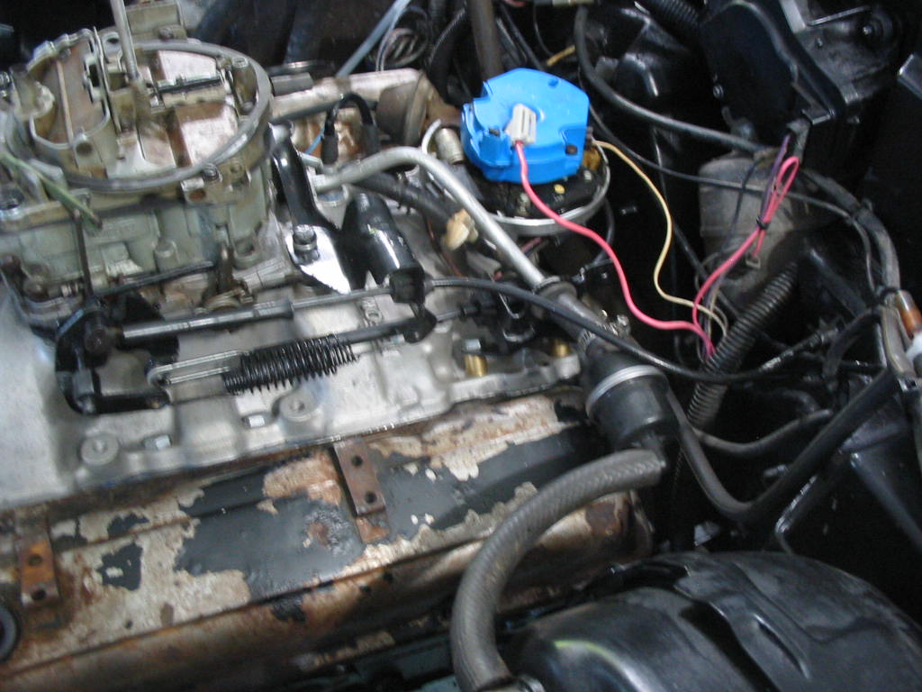 I was very fortunate in that the Caprice is still available and I was able to find and remove two important components for the lock-up torque converter. The item on the left is a vacuum switch and the round thingy on the right is a vacuum delay switch which stops the transmission from rapidly going in and out of lock-up. There is only one wire coming from the trans so I’m not sure where the extra output wire is supposed to be connected to. More Googling to find that out as I don’t have the wiring diagram for an ’82 Caprice.