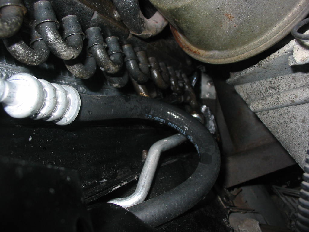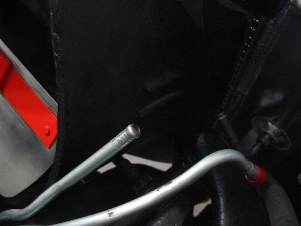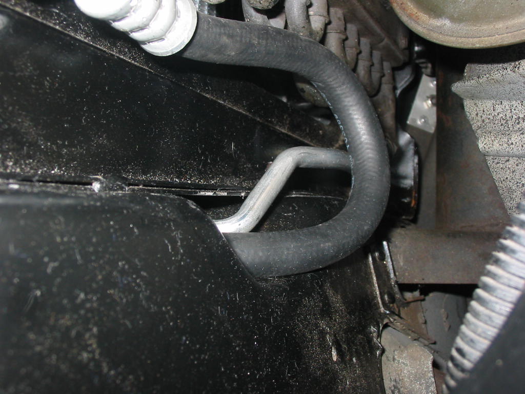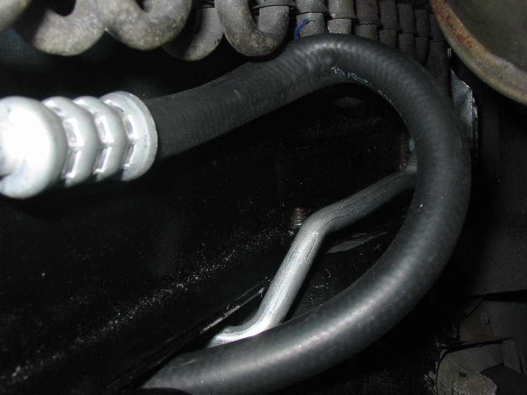 Ditto for the high pressure AC line. The new one was just out of match enough that it wouldn’t mate up with the lower condenser connection. I had to do some hand bending to get it to fit. Also it came nowhere near the fender where the hole for the support bracket is located.