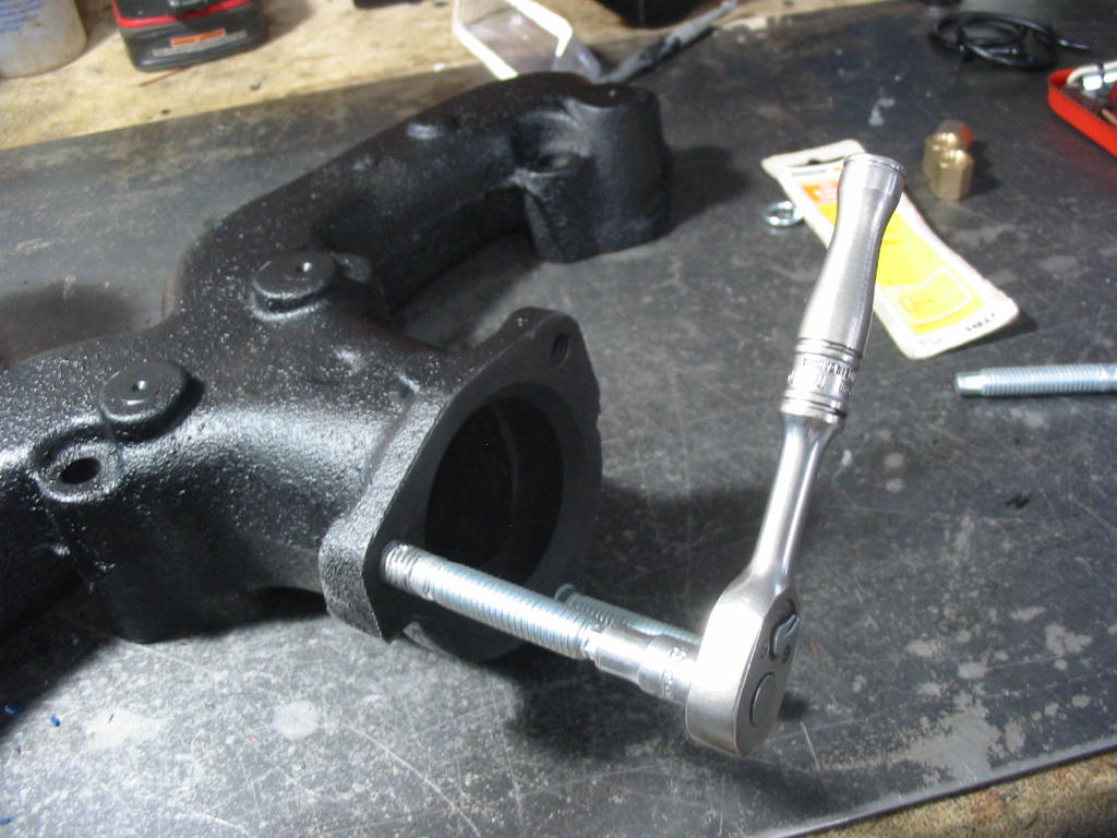 Installing new studs in the exhaust manifolds. I have put never-seize compound on the threads just in case I need to remove them. I’ll also put the compound on the bottom threads as I will need to take the engine out in a year or so