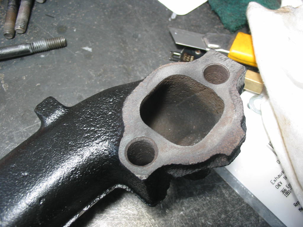 The upper shot is of the original factory exhaust manifold. The bottom one is the China replacement. As you can see the internal bore of the original is much smoother than the replacement. I didn’t go to the bother of grinding out the new manifold, but I will when I swap the original engine back in if I don’t go with headers or custom ram’s horn replacements.