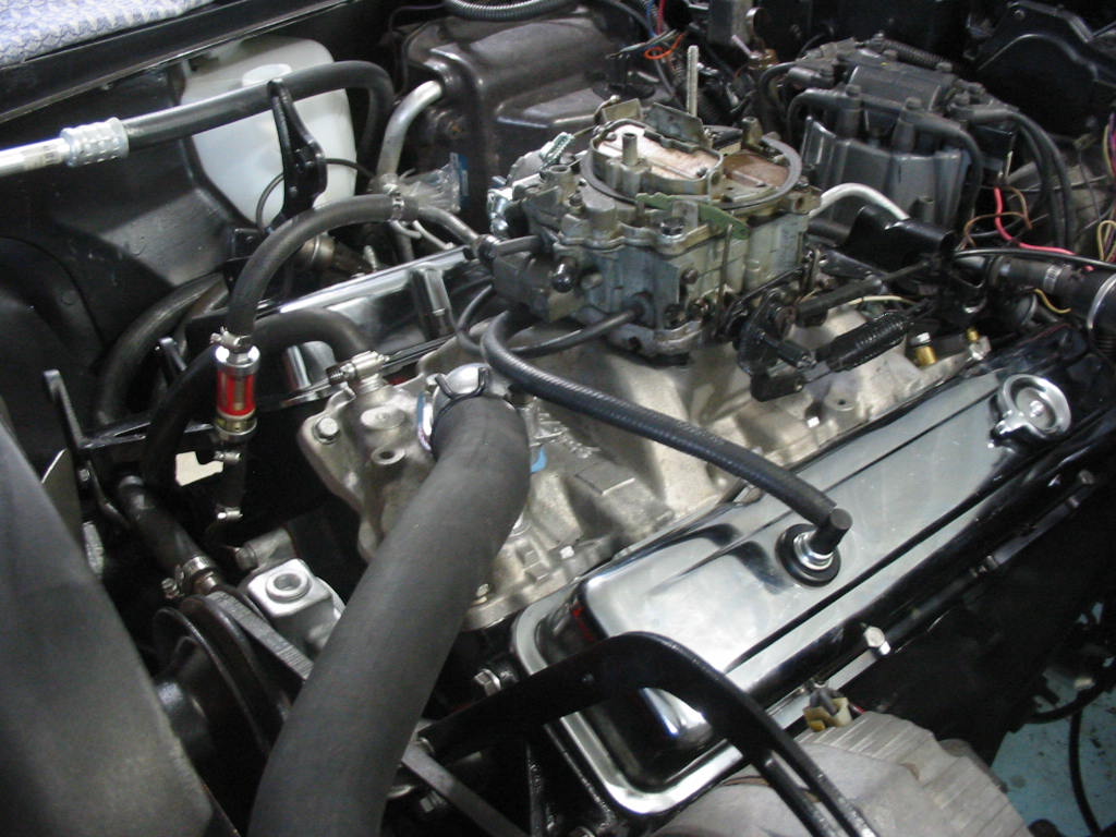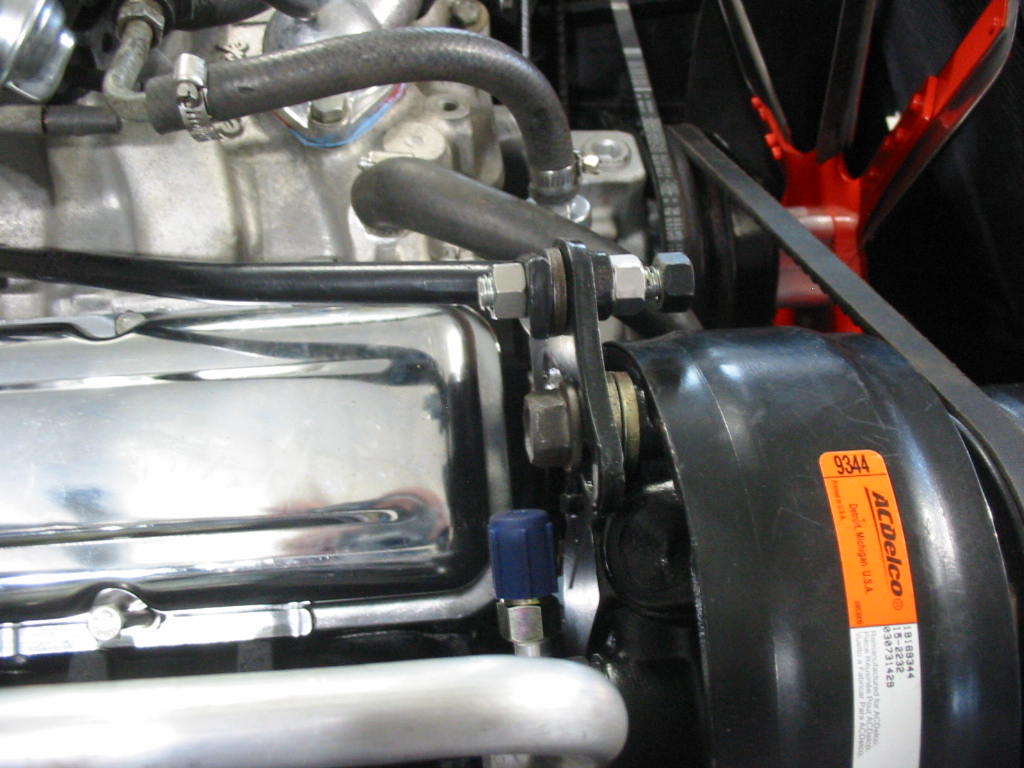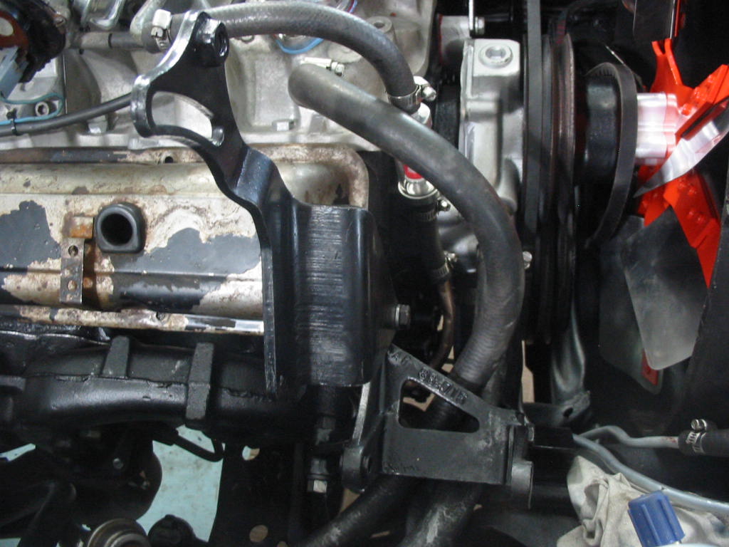 I also had to use a longer bolt and spacer at the manifold to allow the bracket to fit flat on the aftermarket intake manifold. Lots of fiddling to get it all to work, but when I swap back to the original 350 it should be more straight forward.