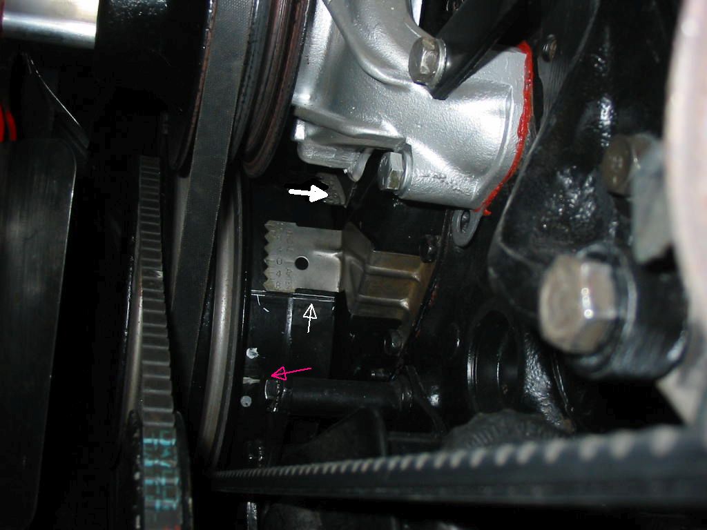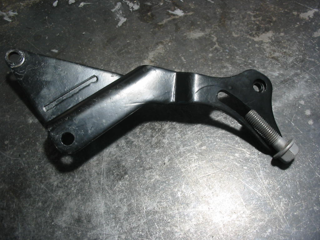 Once the bracket was trimmed to fit the larger bolt I was able to get the unit in place. The original spacer between the bracket and the compressor also wouldn’t fit so I had to swap it for a couple of large washers. Also the adjustment bracket mount on the block had to be ovaled to allow the bracket to rise so that the larger adjustment bolt would fit properly in the compressor. Because of all this I now had to use a spacer to get the adjusting bracket brace to fit.
