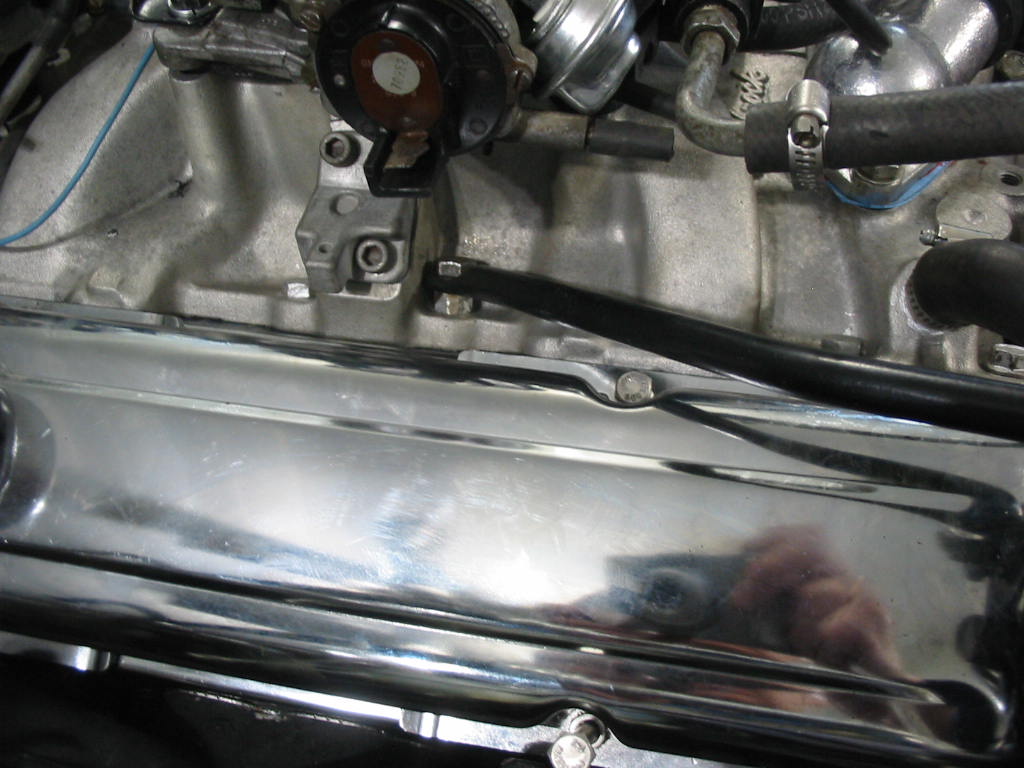 I installed a new set of Rubber gaskets thinking they were the best. Looking closely at the gasket ends I noticed that the gasket was not seating on about 2″ on either end – the black line was about as far as the gasket seated on the block. I don’t like to over-tighten the valve covers; I just tighten the screws as much as I can with a screwdriver handle and socket. I also use spreaders on each screw to distribute the pressure better.