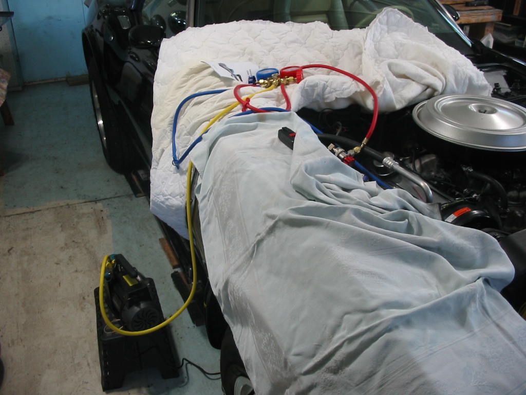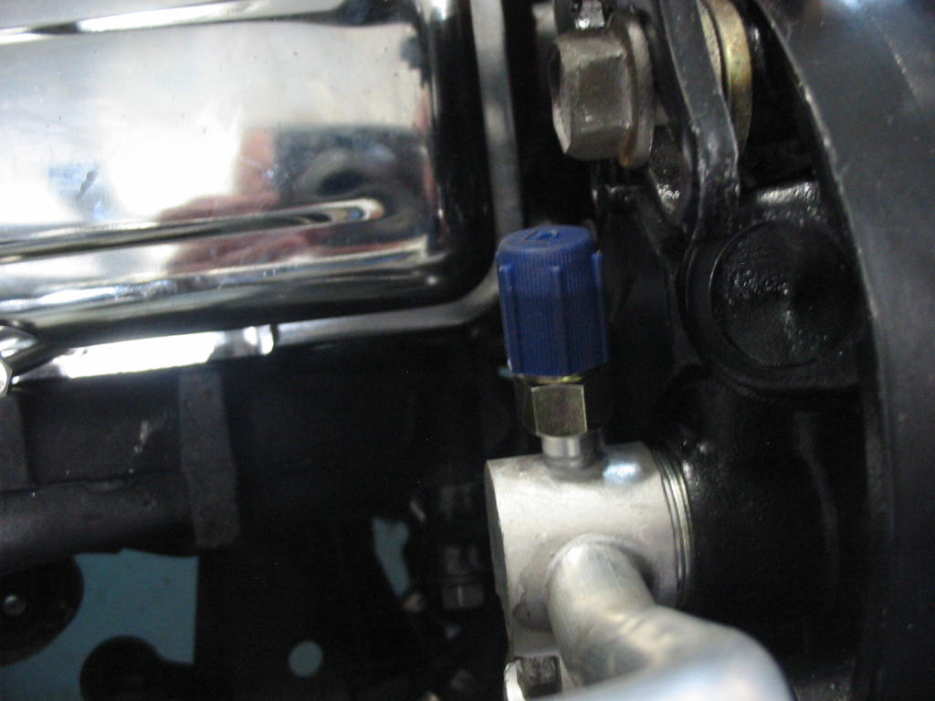 My low pressure 90 deg. fitting came in so I can check the AC system for leaks. I found a serious leak somewhere when I tried to vacuum the system. It would vacuum to about -20 and then no more. When I stopped the vacuum pump the vacuum in the system quickly disappeared.