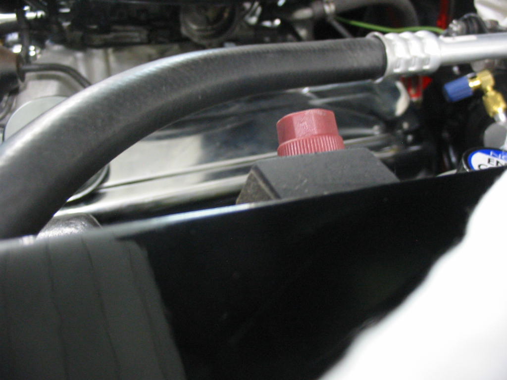 Then I tried to close the hood, but of course the new high pressure 90 degree AC fitting wouldn’t work.