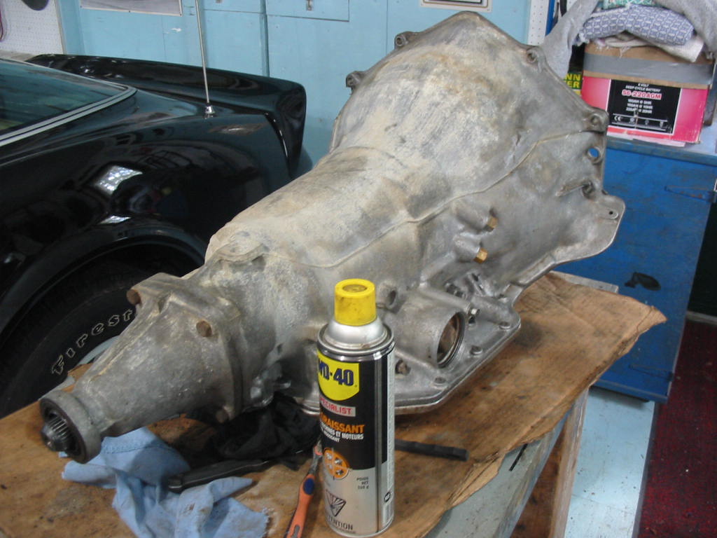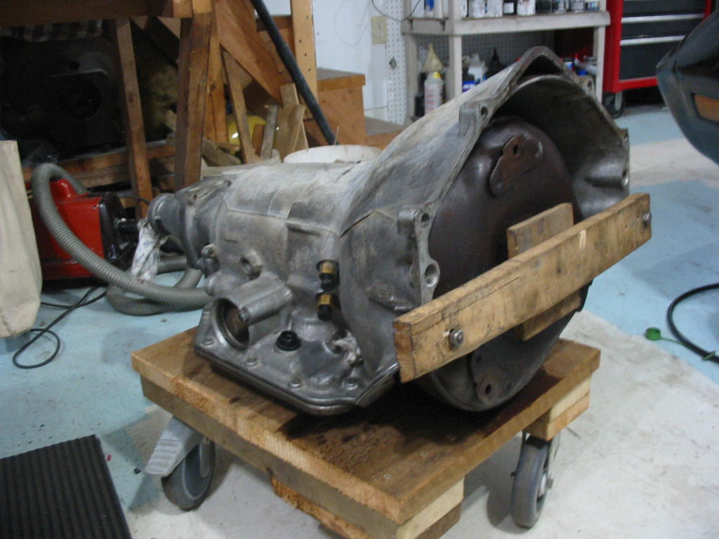 Built a little dolly to move the trans easily. A bit of a grunt getting it off the work-bench and onto the dolly. I actually put it on my pneumatic work seat and then lowered it to the bottom and then slipped if onto the dolly. Can’t be too careful at 79. The back isn’t what it used to be. I”ll tuck the TH350 trans away – just in case…