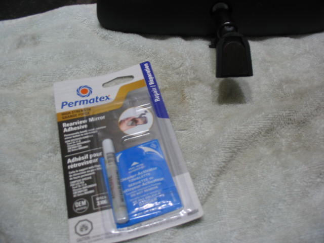 The rear view mirror broke loose twice after the windshield shop tried to stick it on. So I decided to do it myself and bought a Permatex rear view mirror adhesive kit.