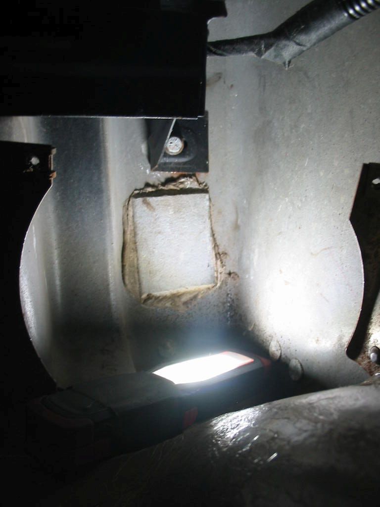 A lot of the seam sealer came away with the crud on the floors. Looks like a factory drain hole in the floor – likely helped to save the metal. I’ll keep that open just in case…