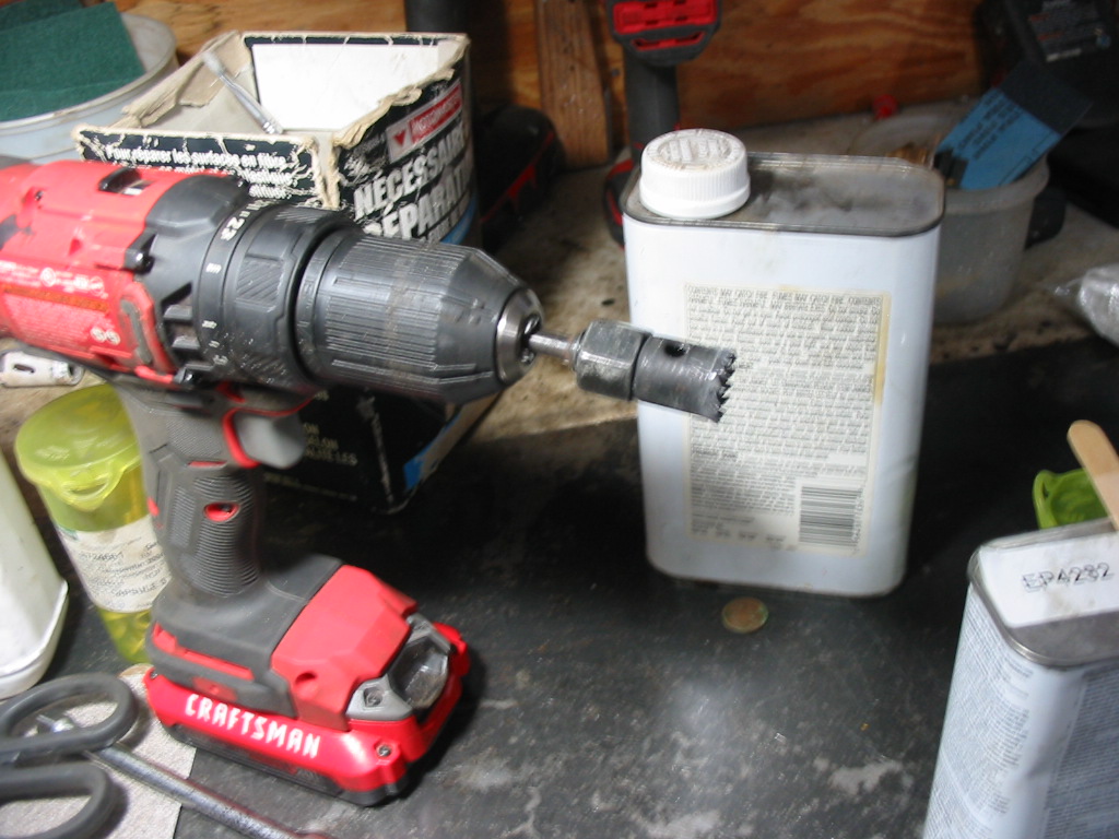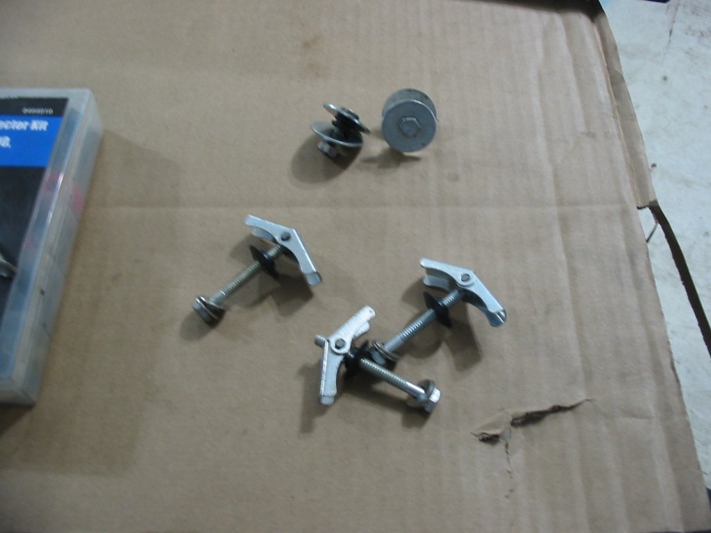 I had to expand the three blind holes holding the main body of the security blind so I could get these plaster board 1/4″ screw fittings in place. The grommets will seal the holes in the fibreglass. The two other bolts will hold the ends in place. I’ll push the bolts in from the wheel well(with sealant around the hole) and use nuts to tighten it all up. The grommet will fit in the fibreglass 1/2″ hole to help keep the bolt steady.