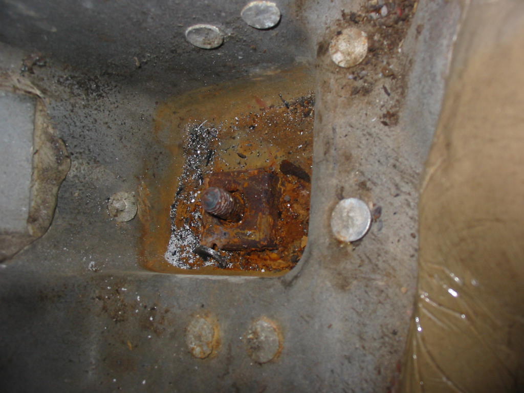 The body mount bolts on both sides are a bit rusty, but still quite solid. I’ll give them a good coat of heavy rust check once the sound deadening material is in place.