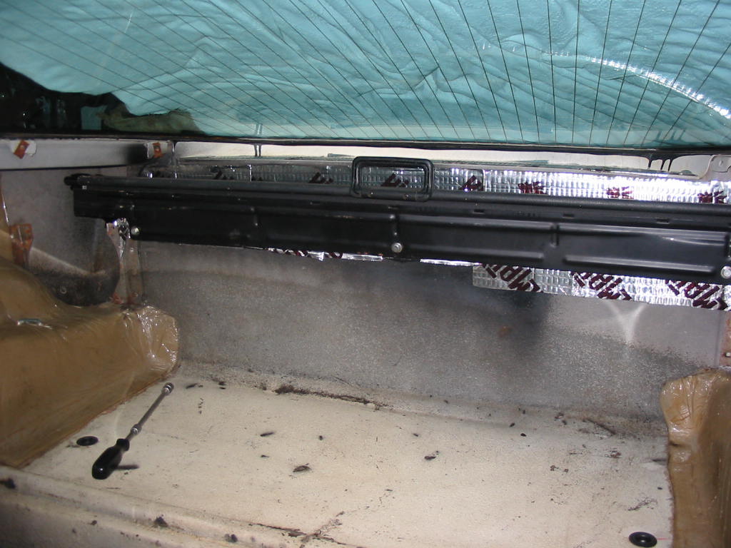 Not showing was a layer of felt like material that was on the flat area and the back up to the security blind. The nice factory insulation over the wheel wells is still in place and in good shape.