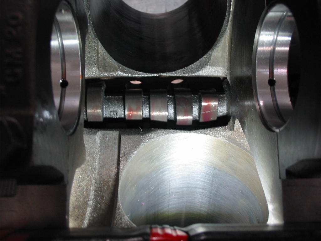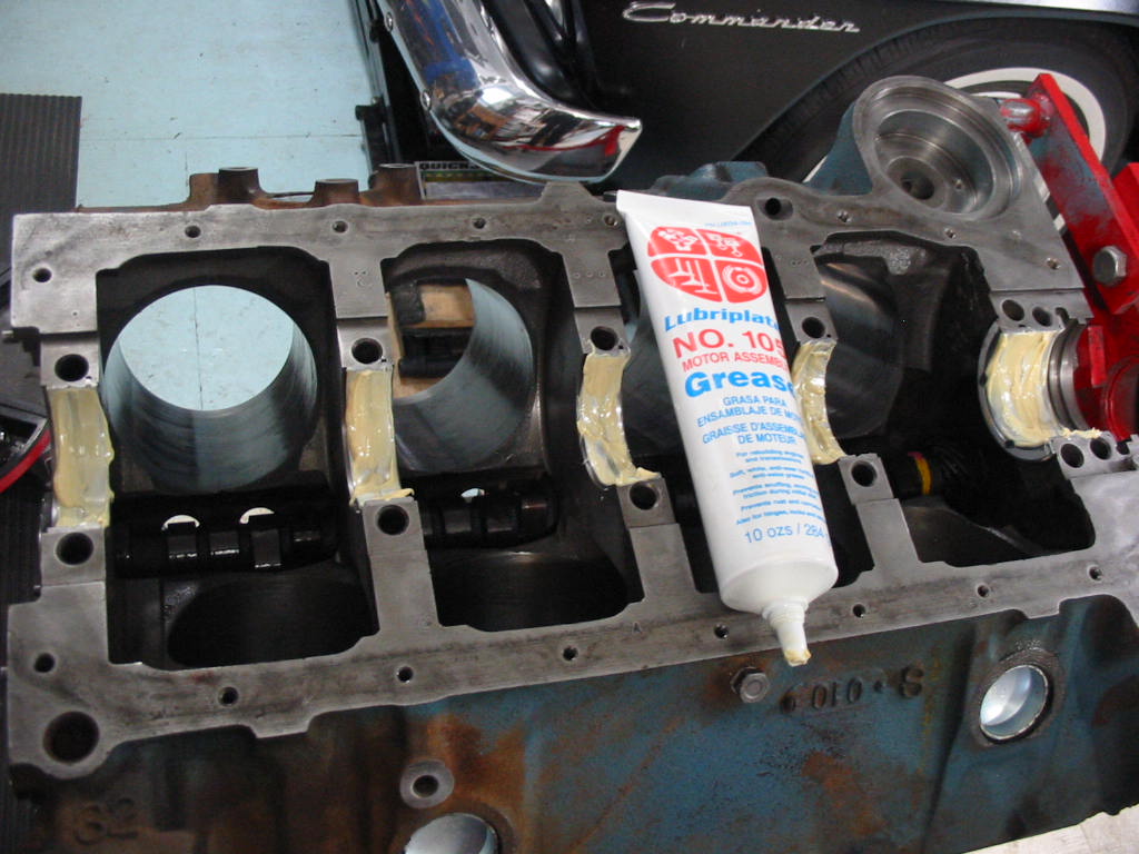 With the cam in place I’ll go ahead and put the crank in. I’m using Lubriplate No. 105 as my assembly lube for other than the cam and lifters.