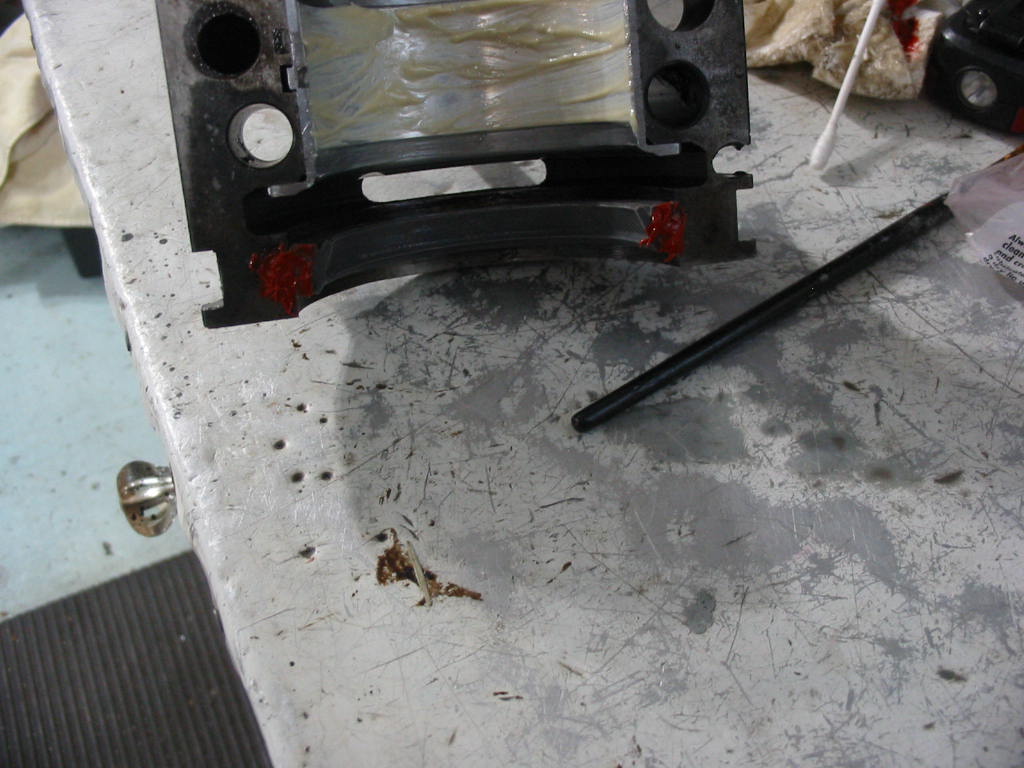 Following instructions that came with the rear seal, I’m adding a dab of red sealant to the ends.