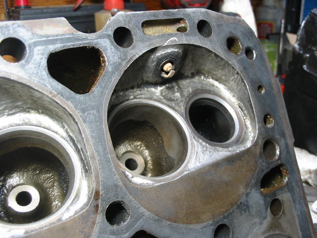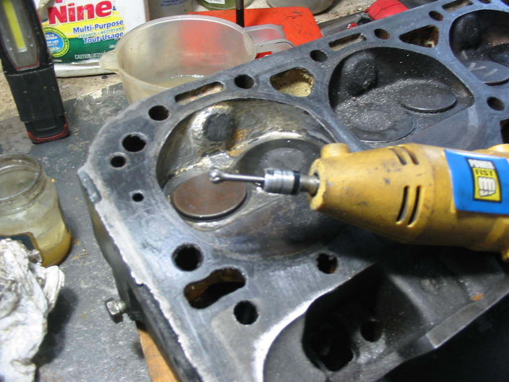 #2 cylinder was the smallest at 72.0cc. I used a small ball grinding bit on my dremel tool to scrape a small amount from the chamber surface and remove some of the shrouding around the valves. The amount removed from each cylinder varied. Final result was all cylinders within 1 cc of 75 cc.
