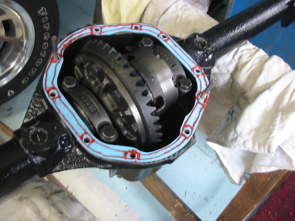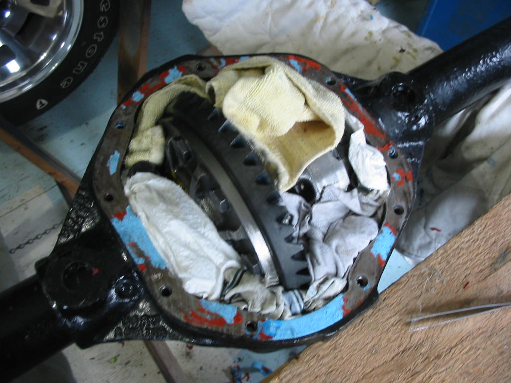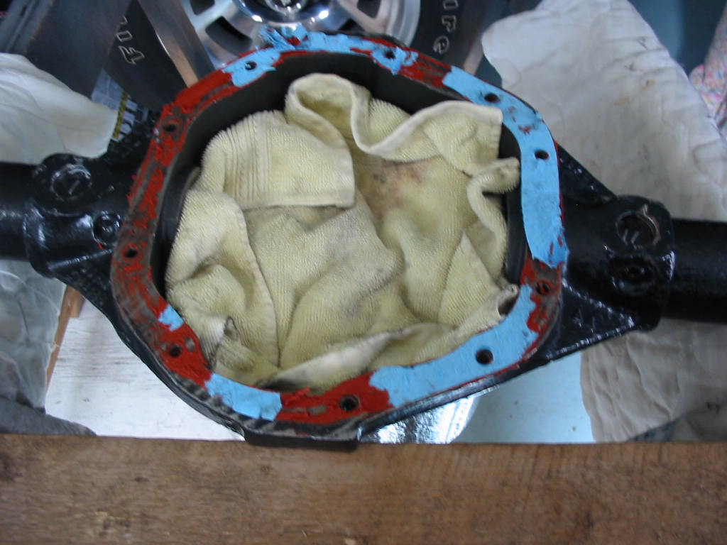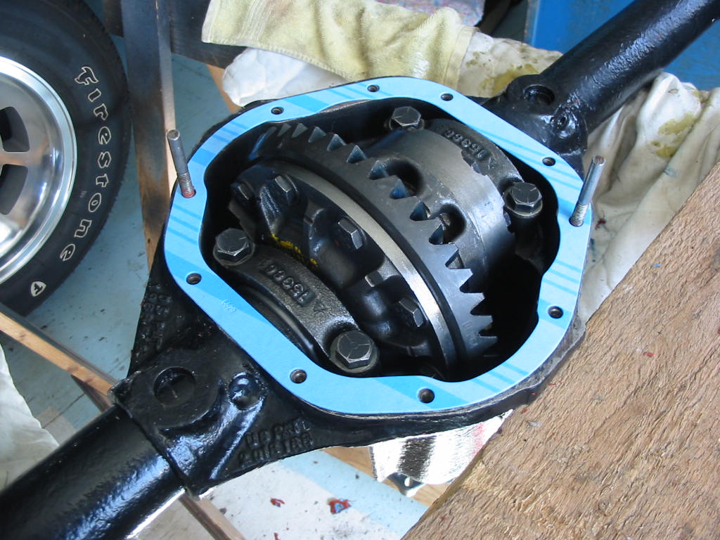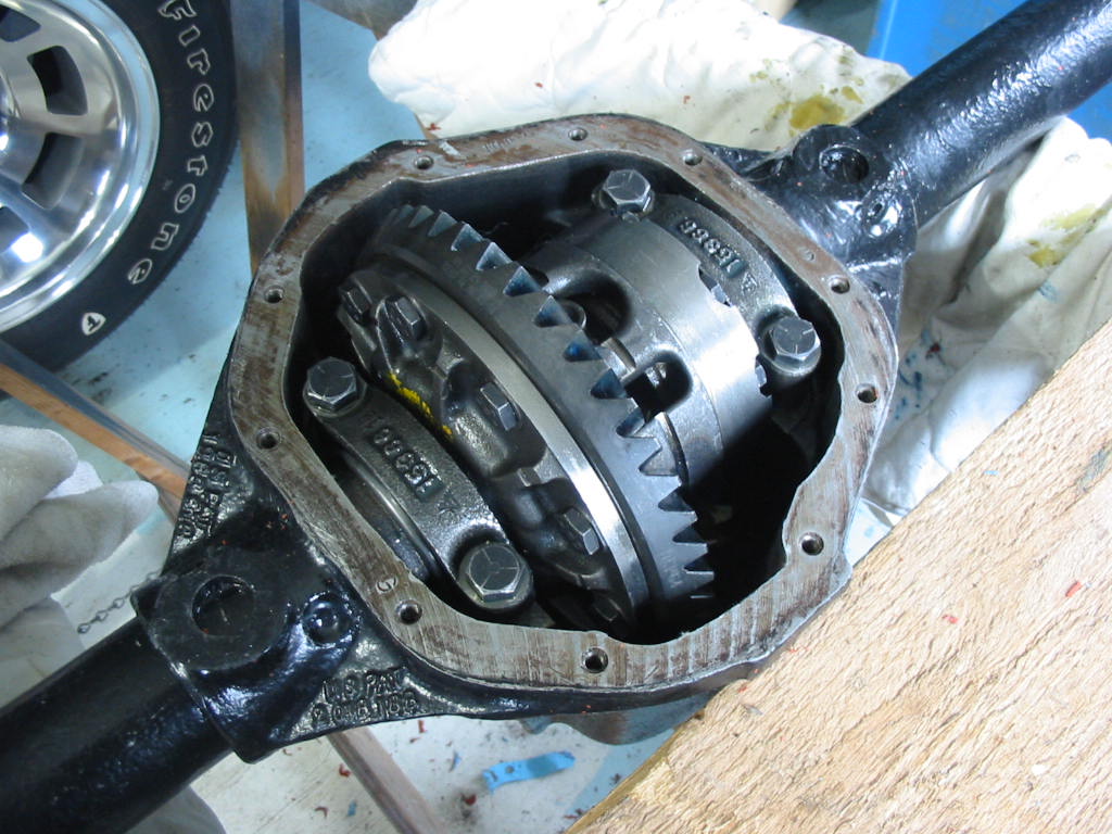 With this done I replaced the TT unit in the differential housing. I then snugged up the carrier bearing caps and put axles in both ends before tightening them to 80’#.