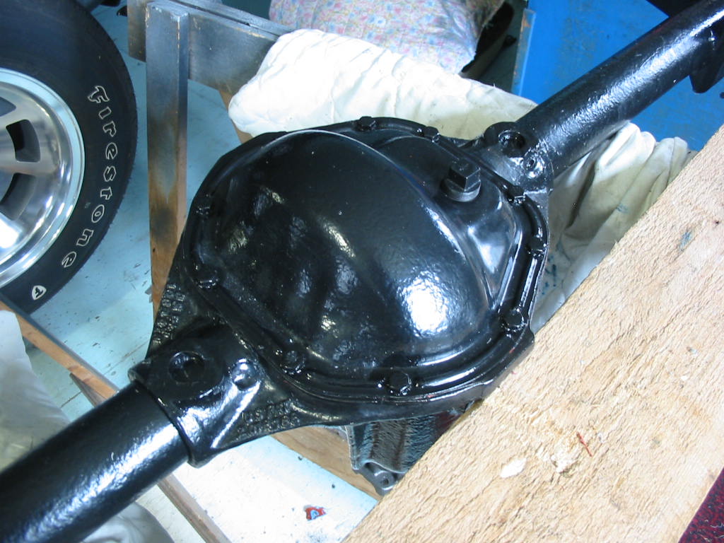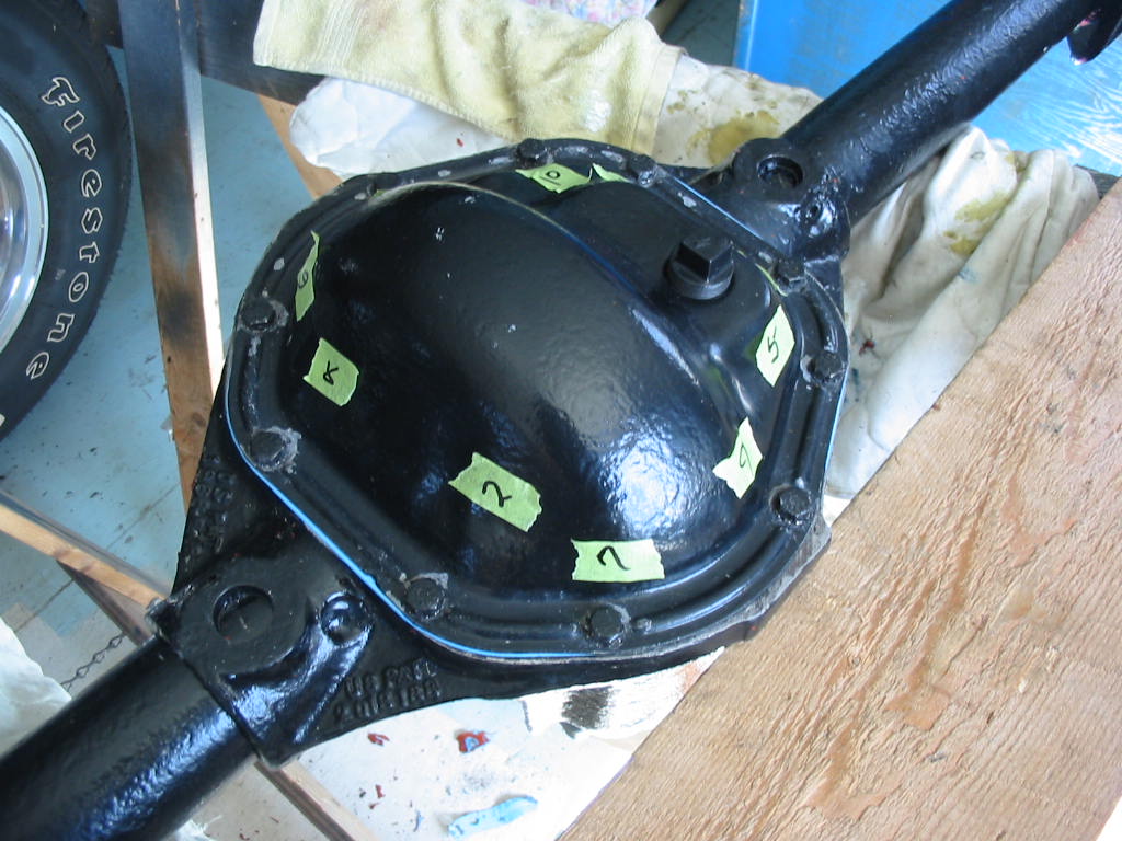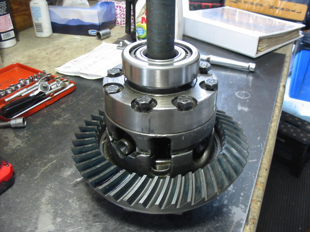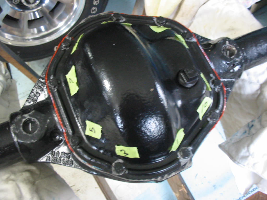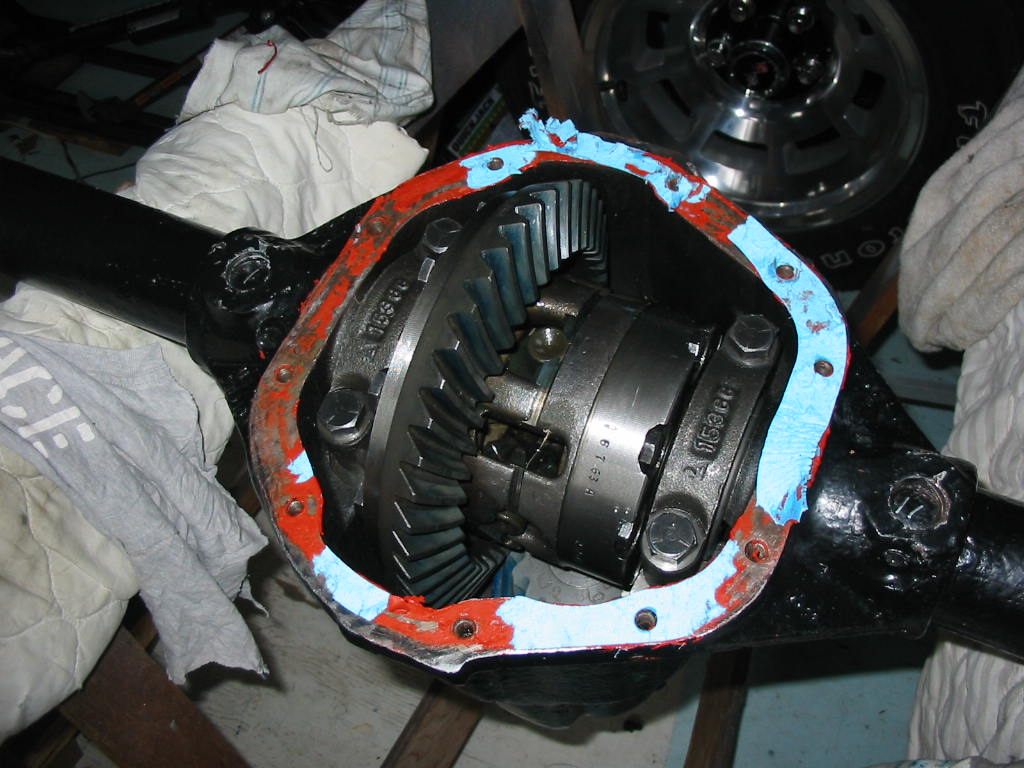 With this done I replaced the TT unit in the differential housing. I then snugged up the carrier bearing caps and put axles in both ends before tightening them to 80’#.